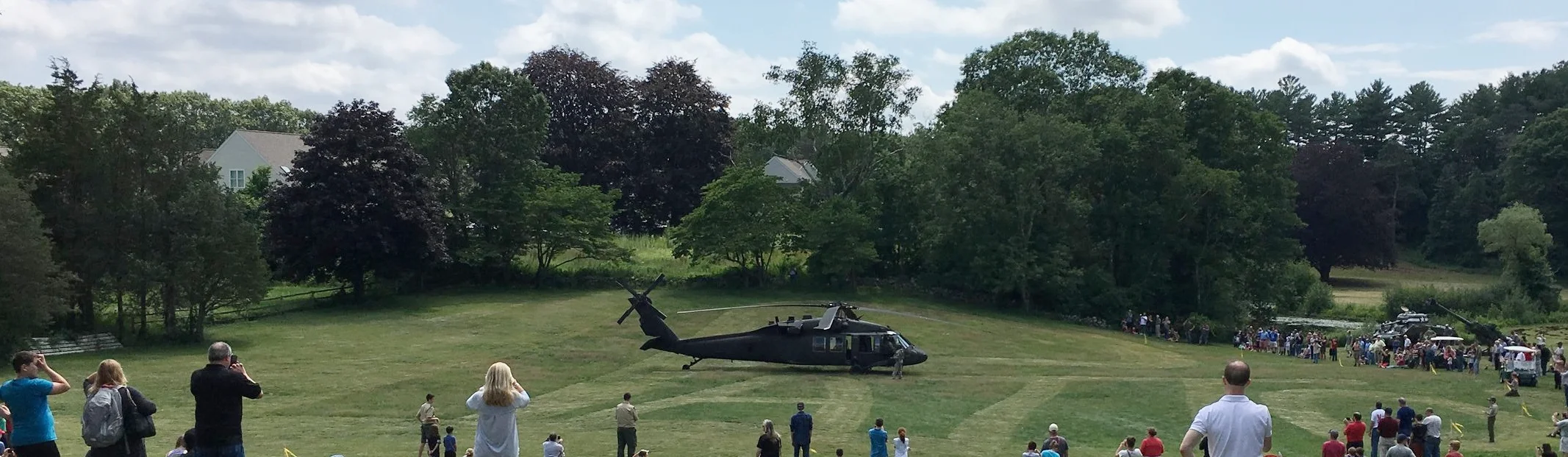 In fact that is already happening. For the past several years the Wenham Museum has rented the grounds for their Military History Day. Last July nearly 1000 visitors came to the Homestead for all kinds of military activities – military reenactments, displays of military memorabilia, and military vehicles including a tank. The highlight was the landing of a Blackhawk helicopter on the Patton grounds.